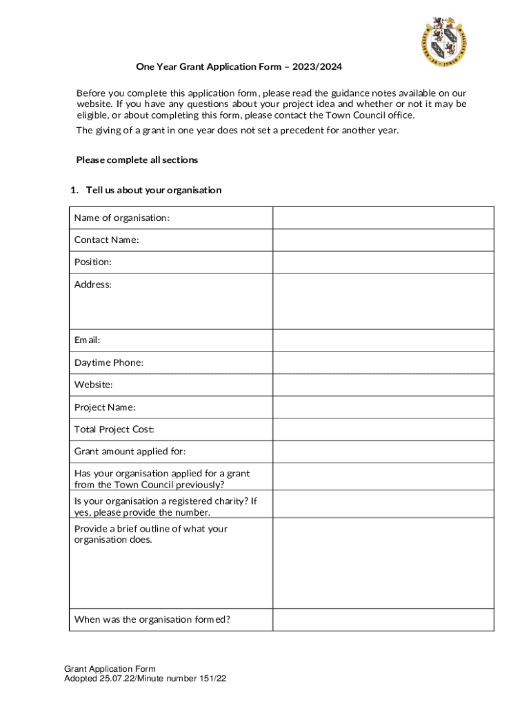 One Year Grant Application Form 2023/2024 Before you complete this application form, please read the guidance notes available on our website. If you have any questions about your project idea and