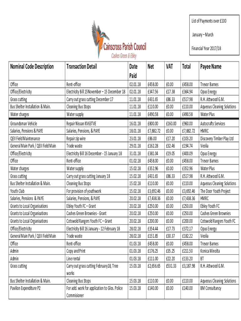 Financial Year 2017/18Nominal Code DescriptionTransaction Retaliate