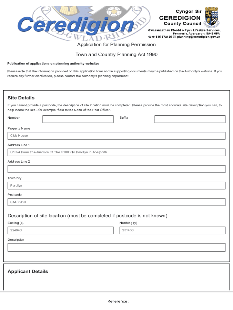 Application for Planning Permission Town and Country Planning Act 1990 Publication of applications on planning authority websites Please note that the information provided on this application form