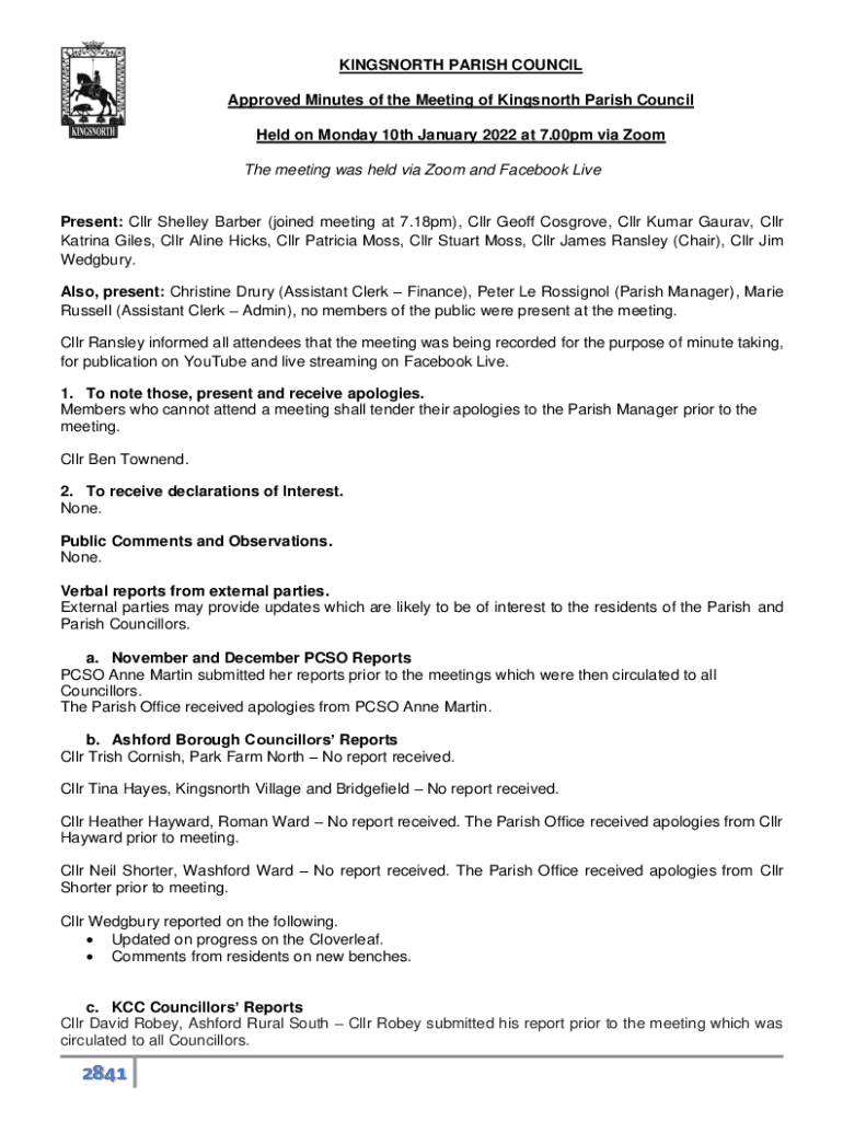 Approved Minutes of the Meeting of Kings north Parish Council