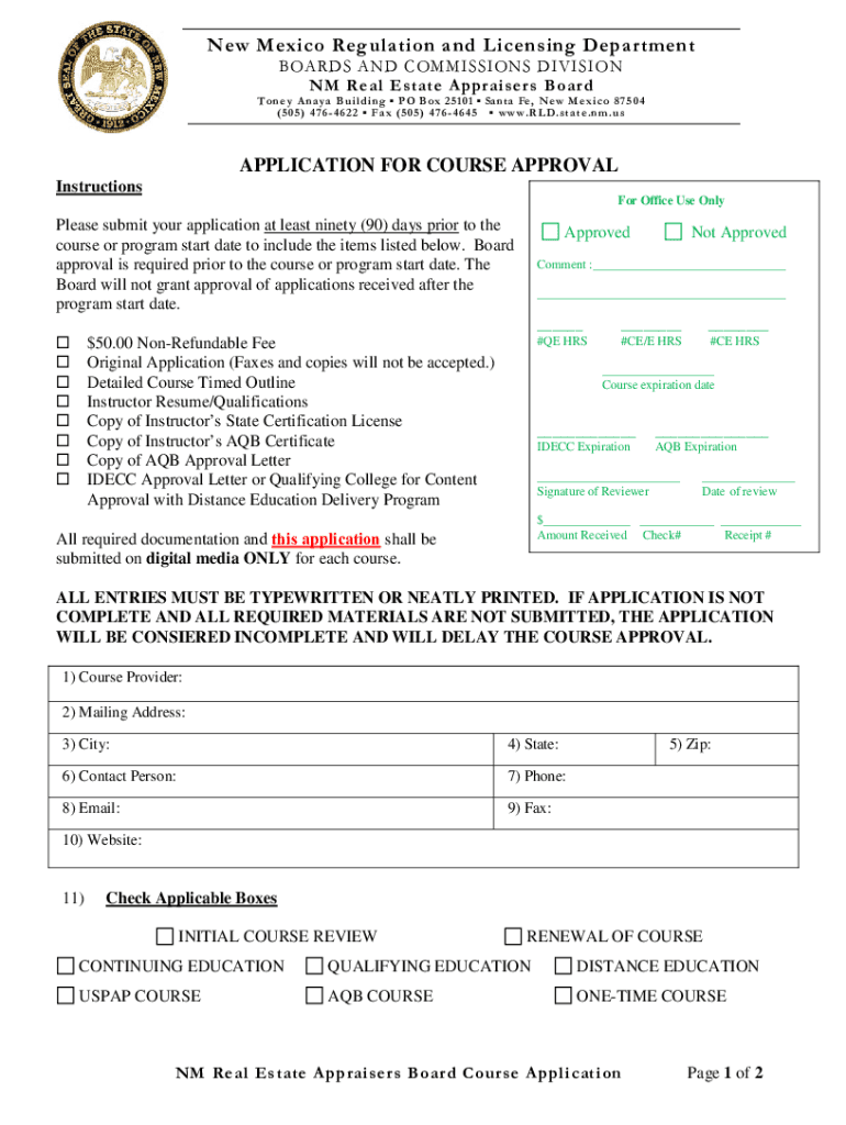 New Mexico Regulation and Licensing Department BOARDS AND COMMISSIONS DIVISION NM Real Estate Appraisers Board o n e y A n a y a B u i l d i n g PO Box 25101 Santa Fe, New Mexico 87504 (505) 476 4622