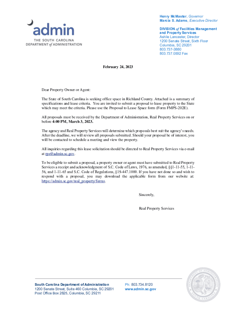 Get the free South Carolina REQUEST FOR LEASE PROPOSALS ... - BidNet