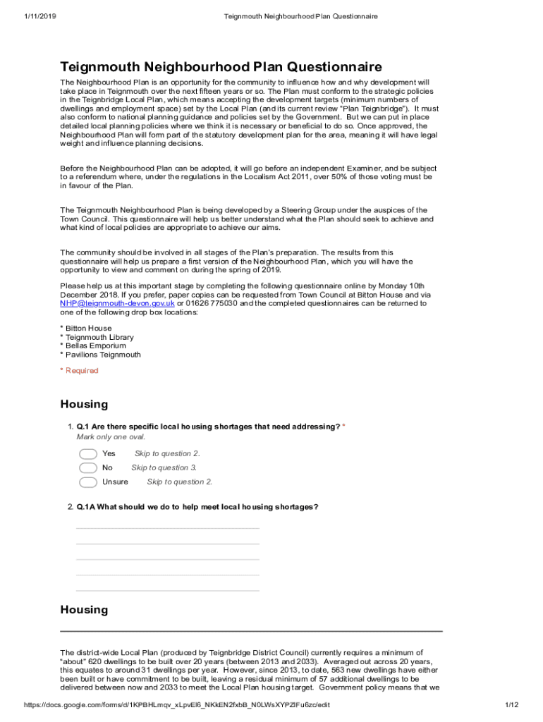 1/11/2019Teignmouth Neighborhood Plan QuestionnaireTeignmouth Neighborhood Plan Questionnaire