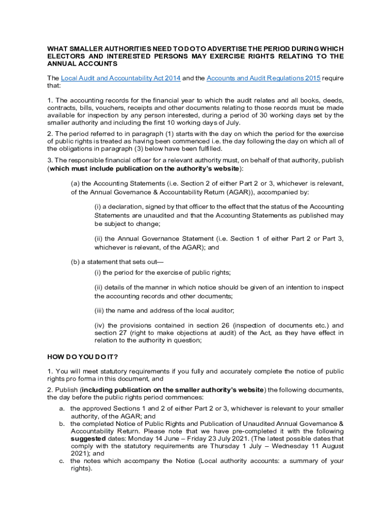 WHAT SMALLER AUTHORITIES NEED TO DO TO ADVERTISE THE PERIOD DURING WHICH ELECTORS AND INTERESTED PERSONS MAY EXERCISE RIGHTS RELATING TO THE ANNUAL ACCOUNTS The Local Audit and Accountability Act