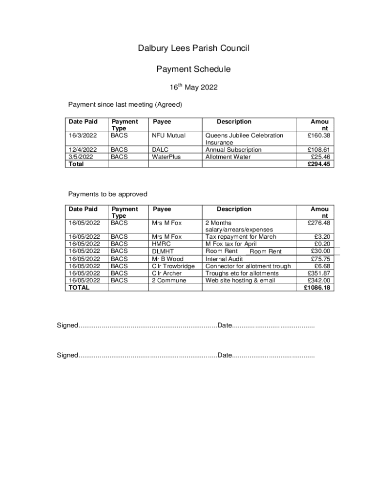 Get the free Dalbury Lees Parish Council Payment Schedule