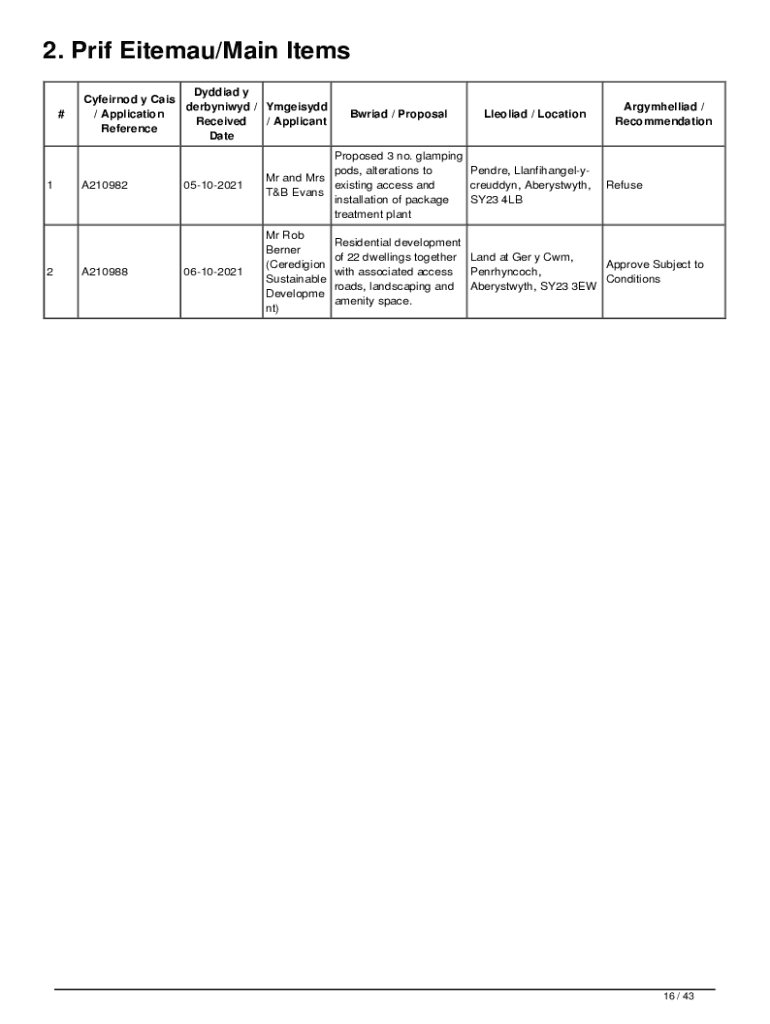 Get the free 2. Prif Eitemau/Main Items