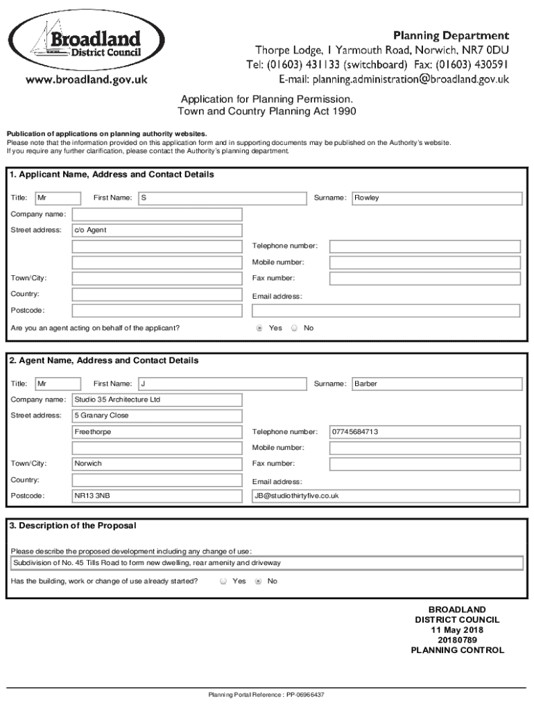 Application for Planning Permission. Town and Country Planning Act 1990 Publication of applications on planning authority websites. Please note that the information provided on this application form
