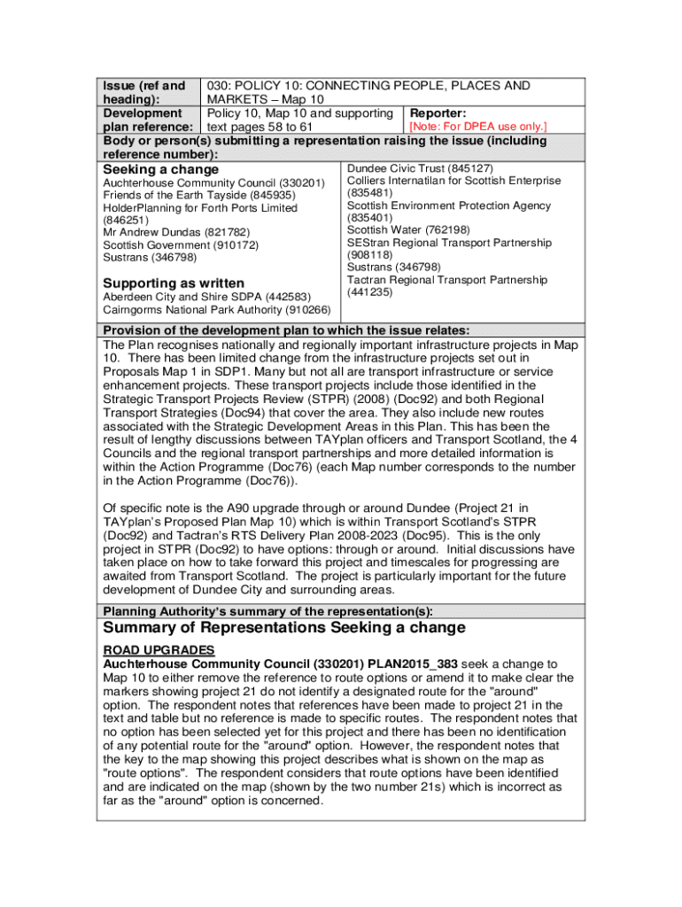 Issue (ref and 030: POLICY 10: CONNECTING PEOPLE, PLACES AND heading): MARKETS Map 10 Development Policy 10, Map 10 and supporting Reporter: [Note: For PEA use only.] plan reference: text pages 58