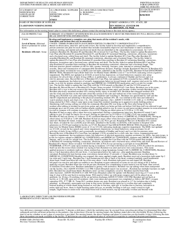 Get the free Nursing Home Survey Report Details for CLARENDON NURSING ...