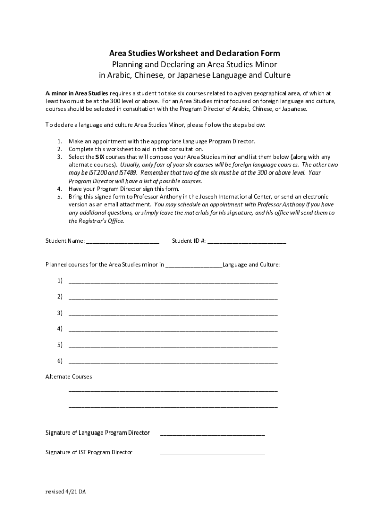 Get the free Area Studies Worksheet and Declaration Form