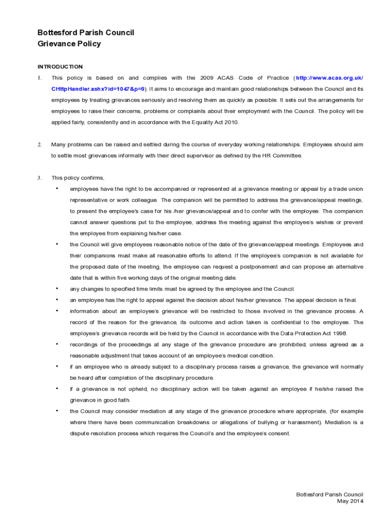 1. This policy is based on and complies with the 2009 ACAS Code of Practice (http://www.acas.org.uk/