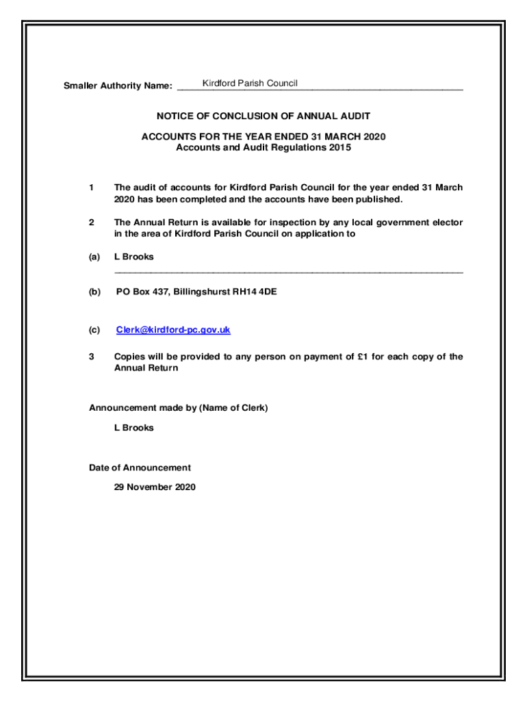 Smaller Authority Name: ___NOTICE OF CONCLUSION OF ANNUAL AUDIT