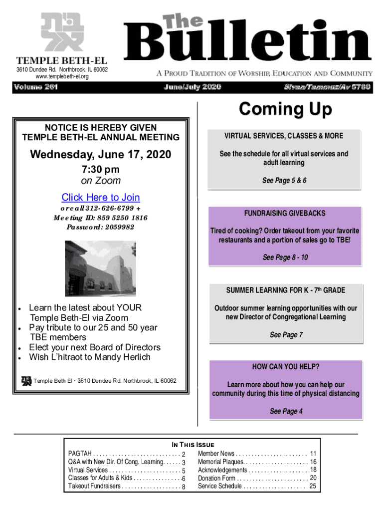 www.templebethel.orgVolume 261June/July 2020Sivan/Tammuz/Av 5780Coming Up