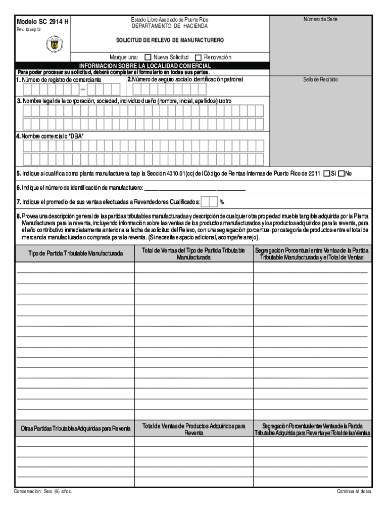 Obtén la gratuita Puerto Rico Manufacturer\'s Exemption Application
