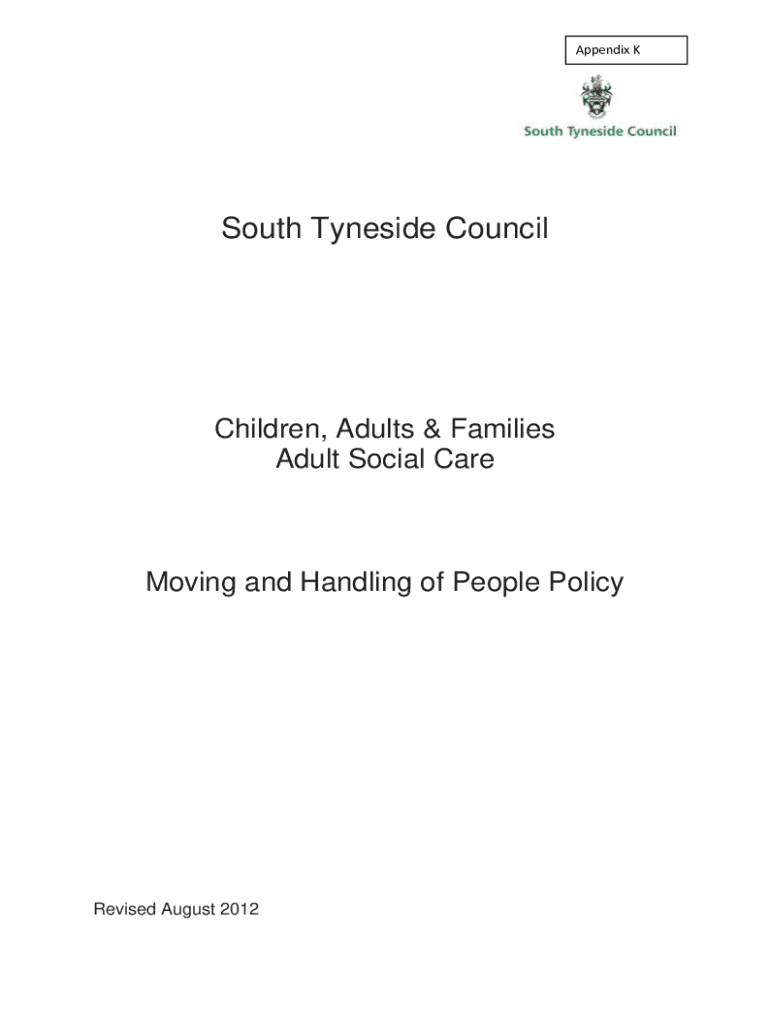Appendix South Inside CouncilChildren, Adults & Families Adult Social Removing and Handling of People PolicyRevised August 2012ContentsPage1Introduction32Policy32.1Policy Statement32.2Procedure for