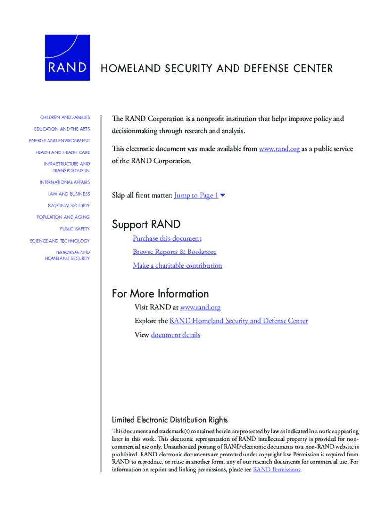 HOMELAND SECURITY AND DEFENSE CENTERCHILDREN AND FAMILIES EDUCATION AND THE Artiste RAND Corporation is a nonprofit institution that helps improve policy and decision-making through research and analysis.