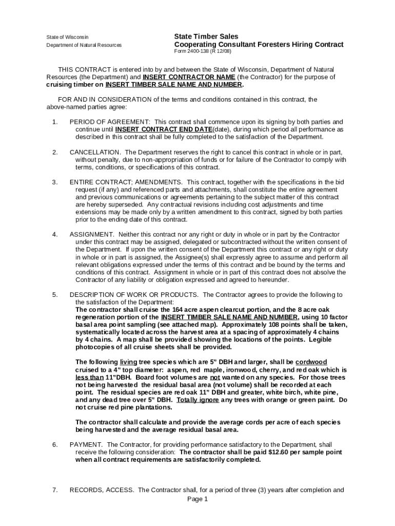 Timber Sales Contract 2400-005 (R 5-20) - dnr wisconsin template instructions