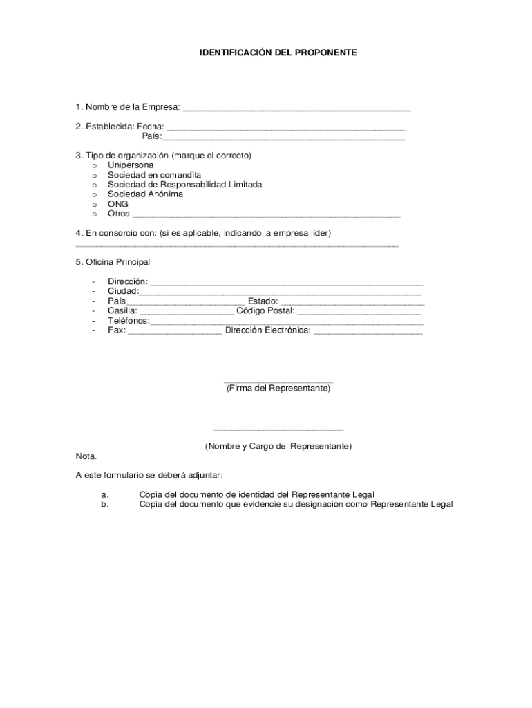 IDENTIFICATION DEL PROPONENTE1. Hombre DE la Empress: ___