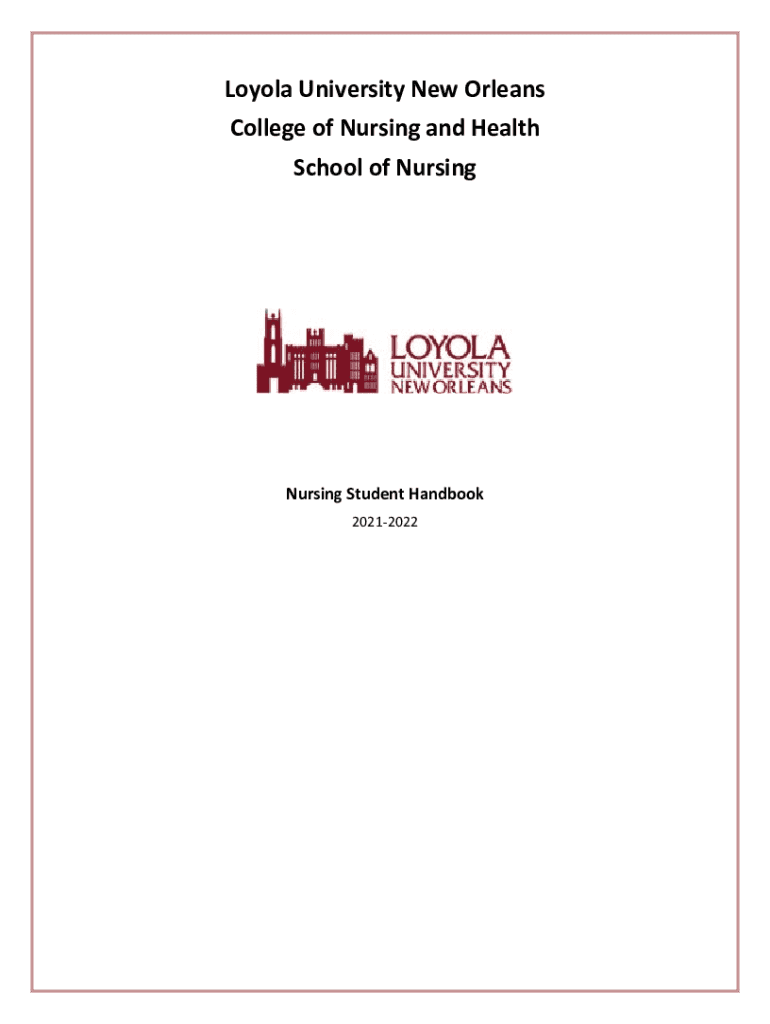 Get the free Nursing Student Handbook - Loyola University New Orleans