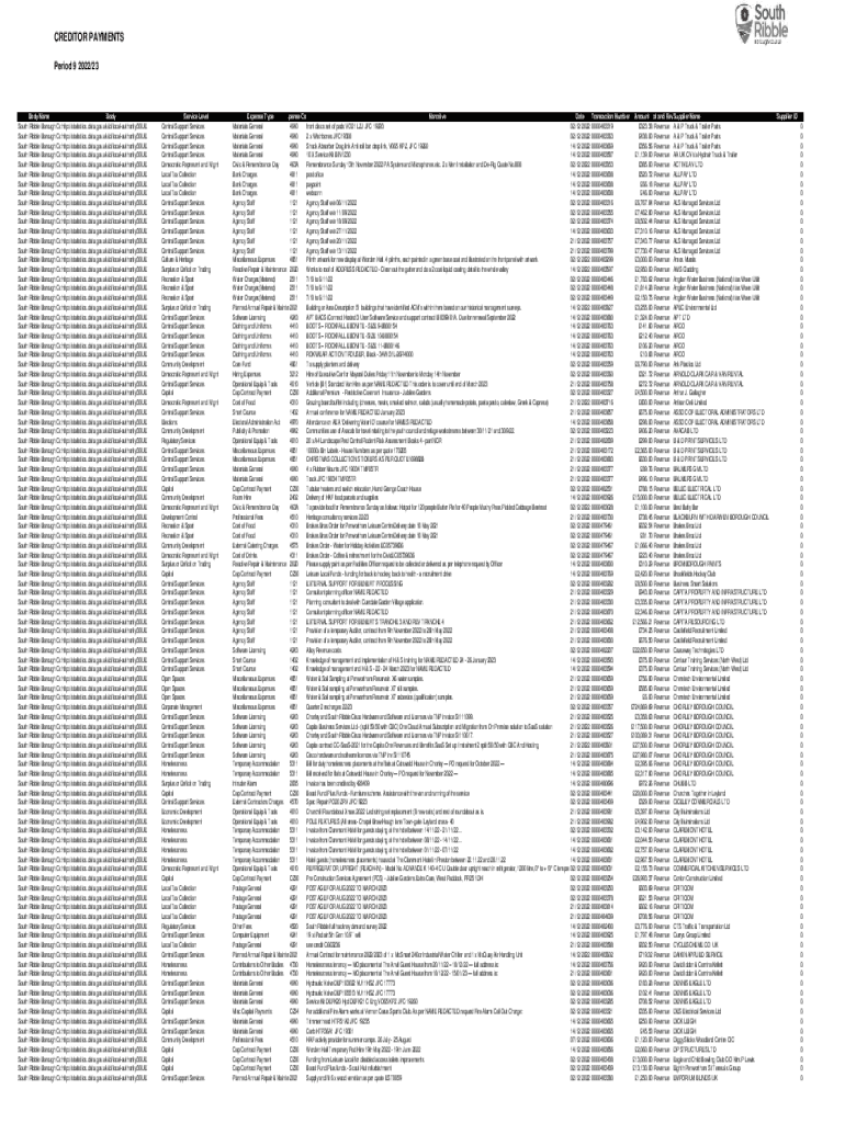 CREDITOR PAYMENTS Period 9 2022/23Body Name Body South Rubble Borough Council http://statistics.data.gov.uk/id/localauthority/30UE South Rubble Borough Council http://statistics.data.gov.uk/id/localauthority/30UE