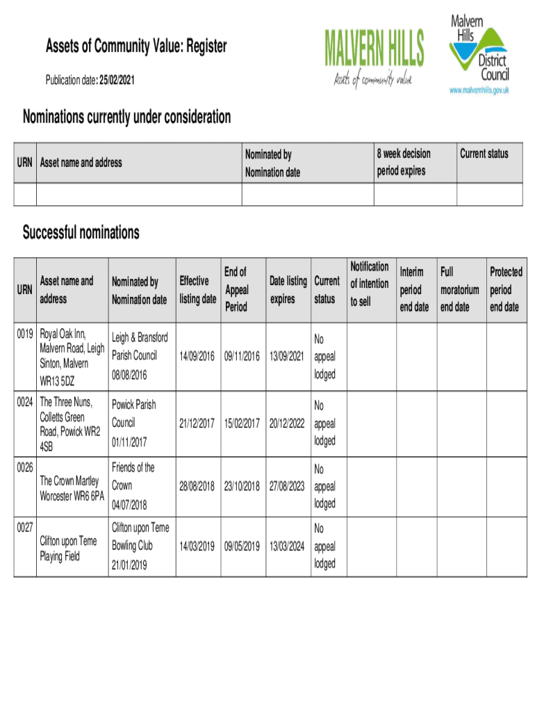 Assets of Community Value: Register