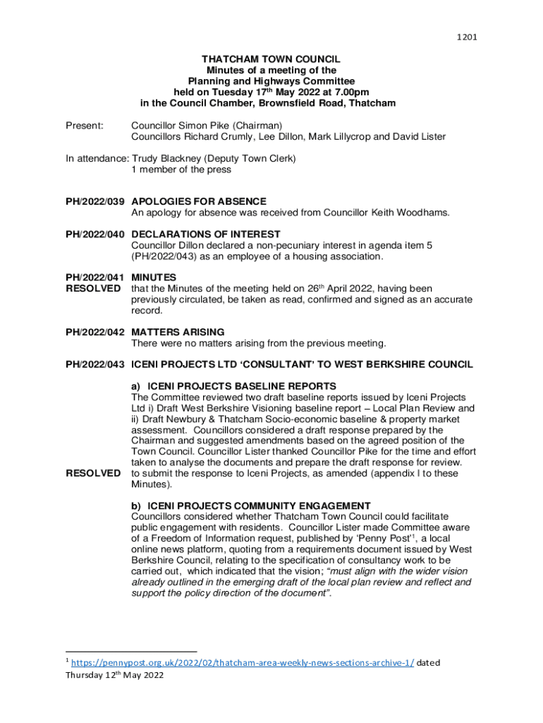 Get the free P&H280622item3bMinutes... - thatchamtowncouncil gov