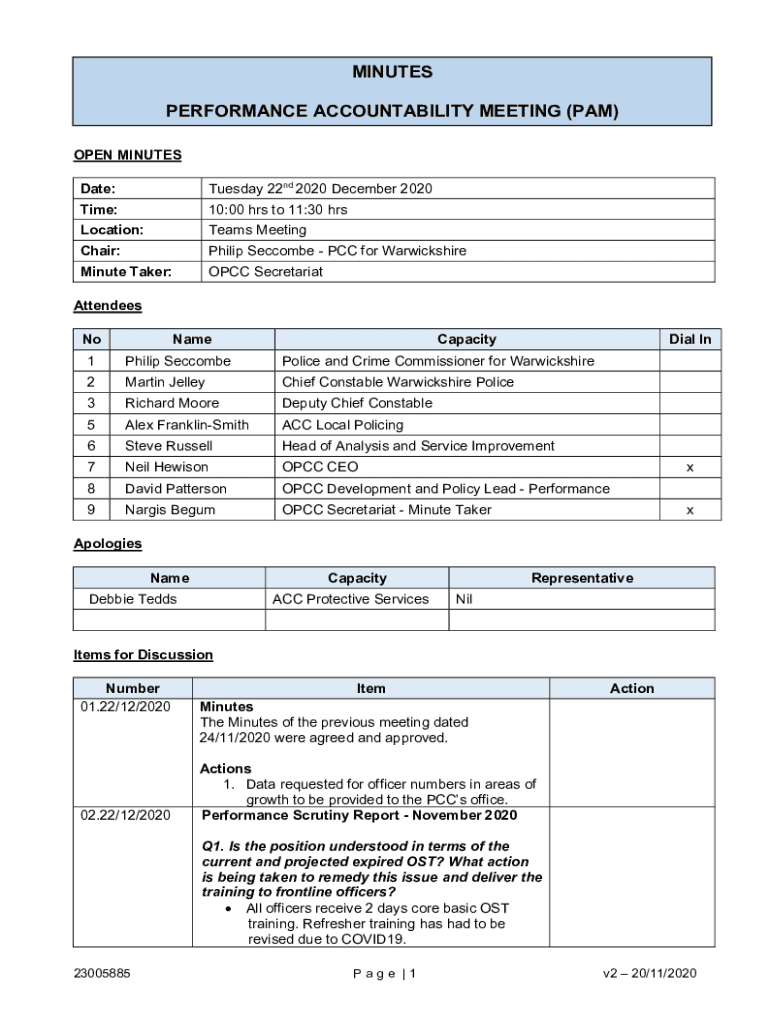 Date:Tuesday 22nd 2020 December 2020Time:10:00 hrs to 11:30 relocation:Teams MeetingChair:Philip Become PCC for WarwickshireMinute Taker:PCC