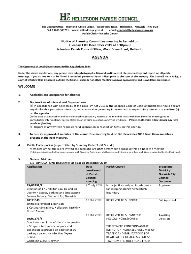 Get the free AGENDA - Hellesdon Parish Council