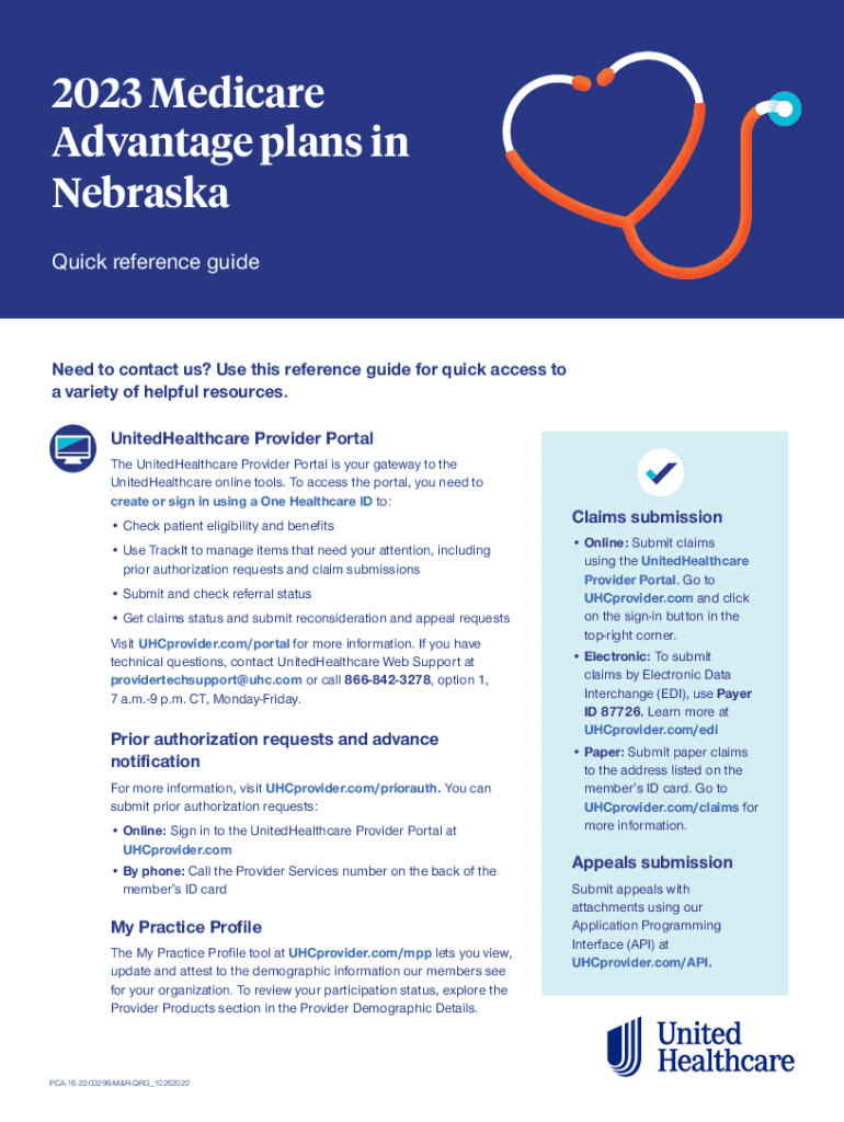 2023 Medicare Advantage plans in Nebraska Quick reference guidance to contact us? Use this reference guide for quick access to a variety of helpful resources. UnitedHealthcare Provider Portal The