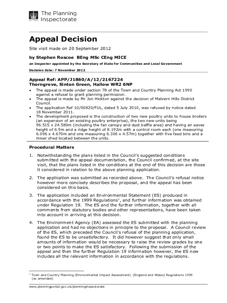 Appeal Decision Site visit made on 20 September 2012 by Stephen Roscoe B.Eng. M.Sc. Cent MICE an Inspector appointed by the Secretary of State for Communities and Local Government Decision date: 7