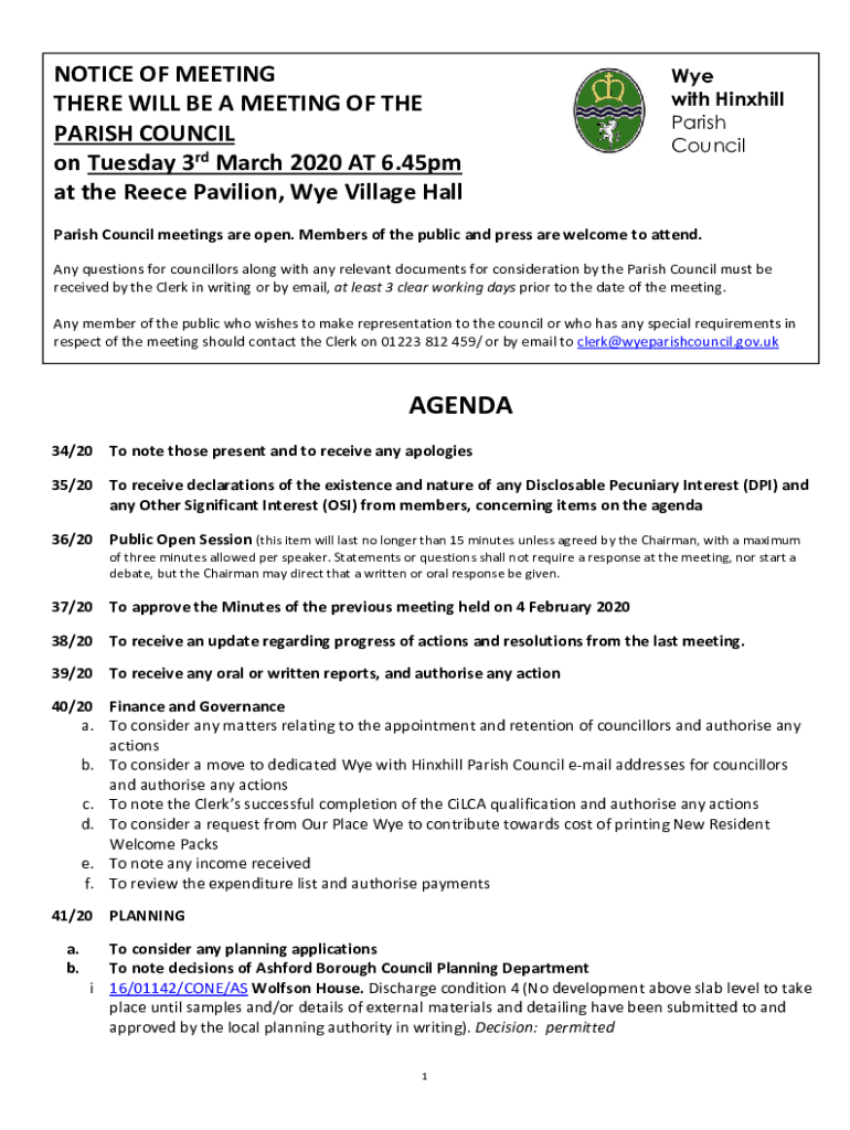 Agenda - Wye Parish is not the form you're looking for?Search for another form here.