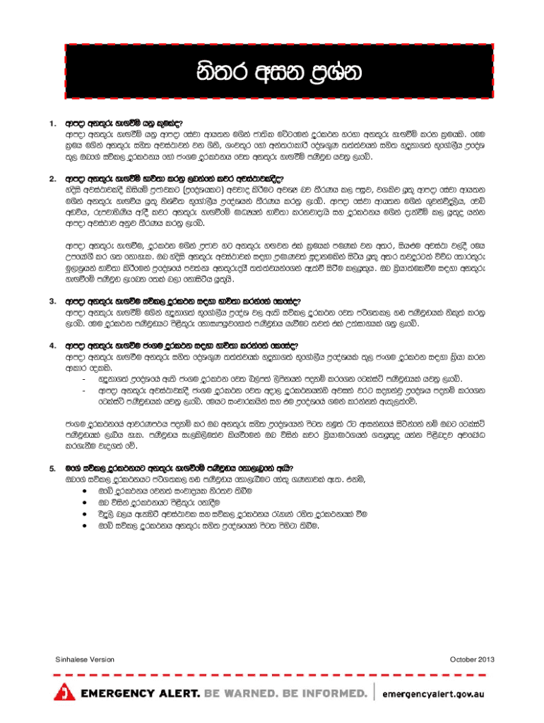 Get the free Sinhalese - Emergency Alert - FAQ sheet 2013.doc
