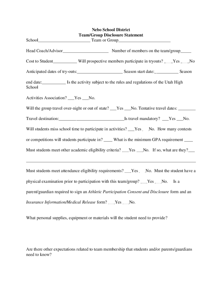 Get the free Nebo School District Team/Group Disclosure Statement