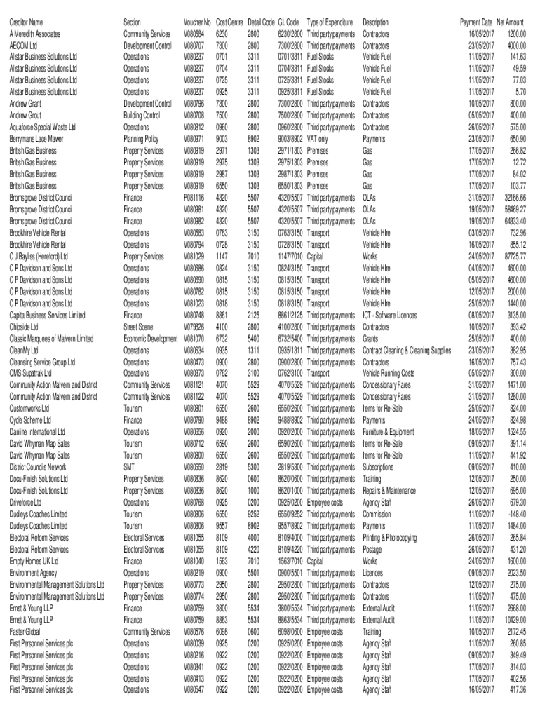 Creditor Names