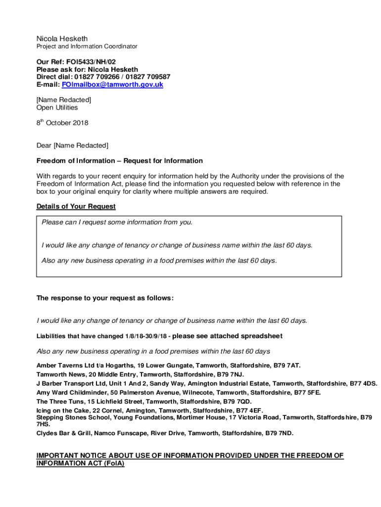 Get the free Nicola Hesketh Project and Information Co Ordinator Our Ref - tamworth gov