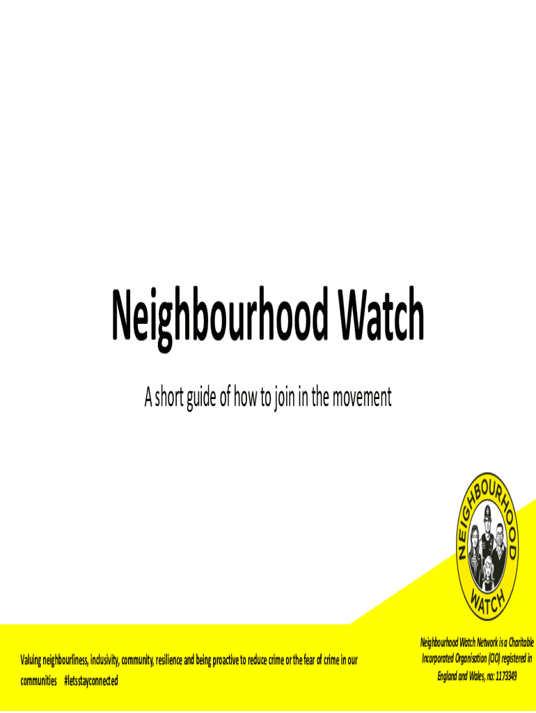 Fill out your neighbourhood watch scheme online with pdfFiller!