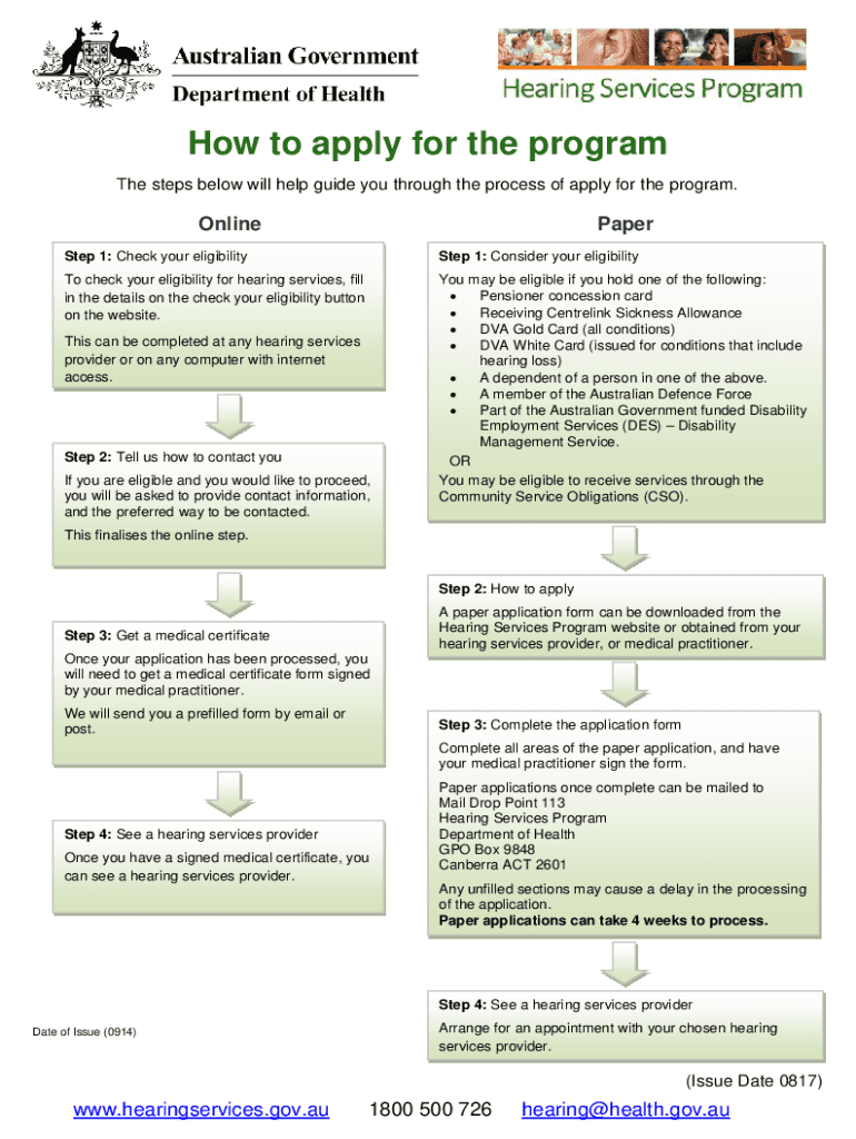 How to apply for the program The steps below will help guide you through the process of apply for the program. OnlinePaperStep 1: Check your eligibilityStep 1: Consider your eligibility check your