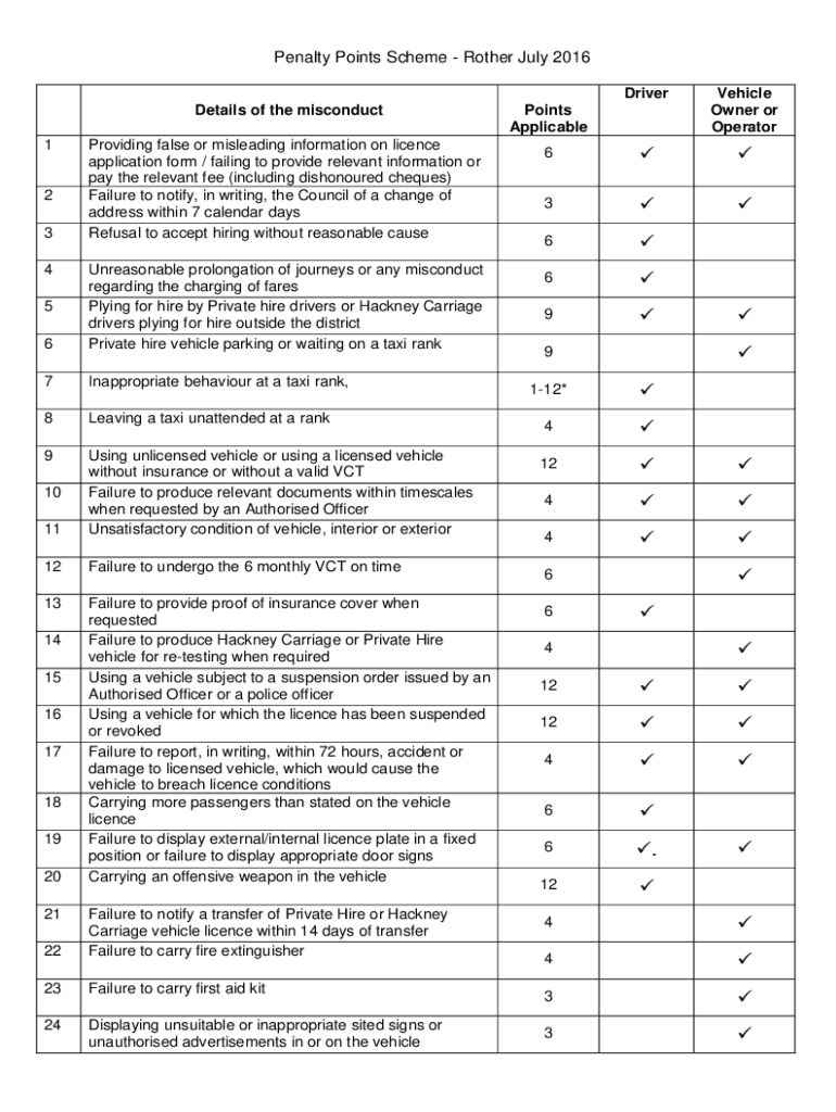Penalty Points Scheme Other July 2016 Details of the misconduct 12 3 4Providing false or misleading information on license application form / failing to provide relevant information or pay the relevant
