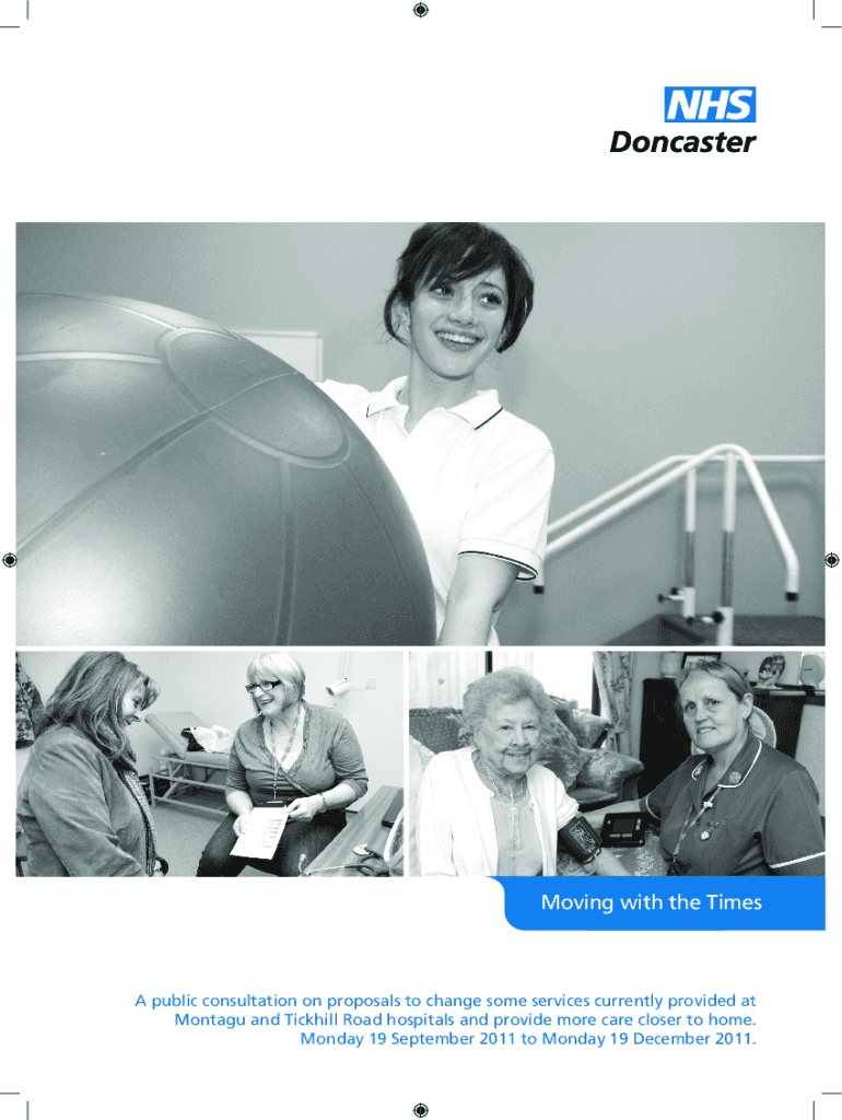 Moving with the Times public consultation on proposals to change some services currently provided at Montage and Tick hill Road hospitals and provide more care closer to home. Monday 19 September