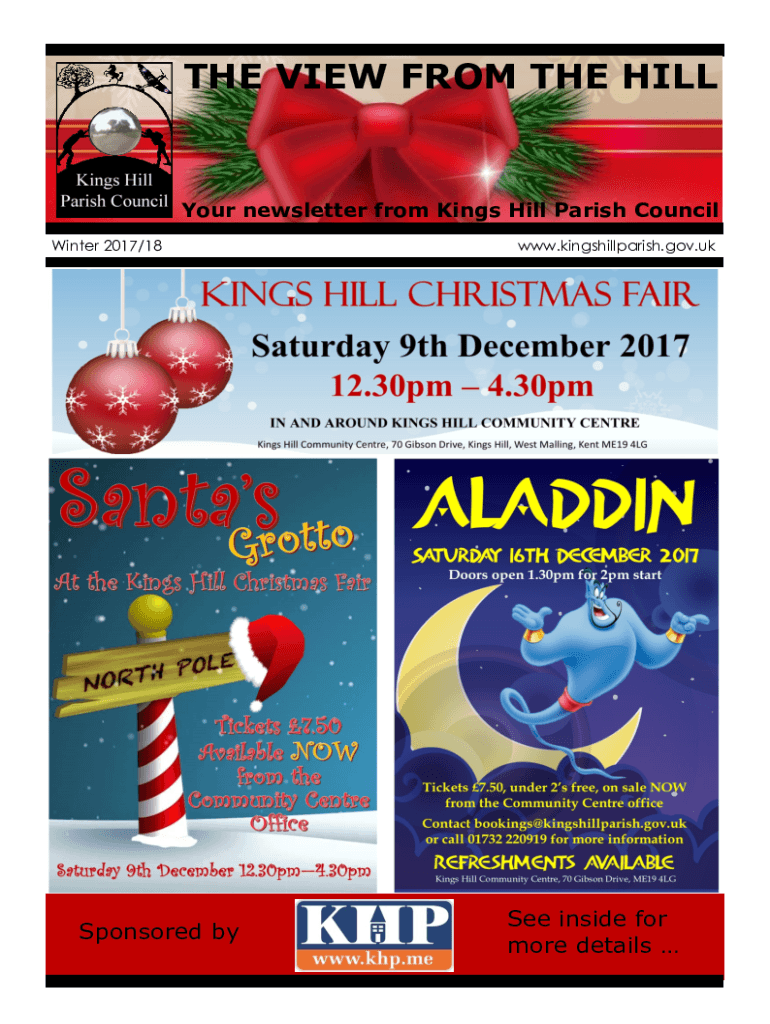 THE VIEW FROM THE HILLY our newsletter from Kings Hill Parish Council Winter 2017/18Sponsored bylaw.kingshillparish.gov.unsee inside for more details Winter 2017/18www.kingshillparish.gov.village