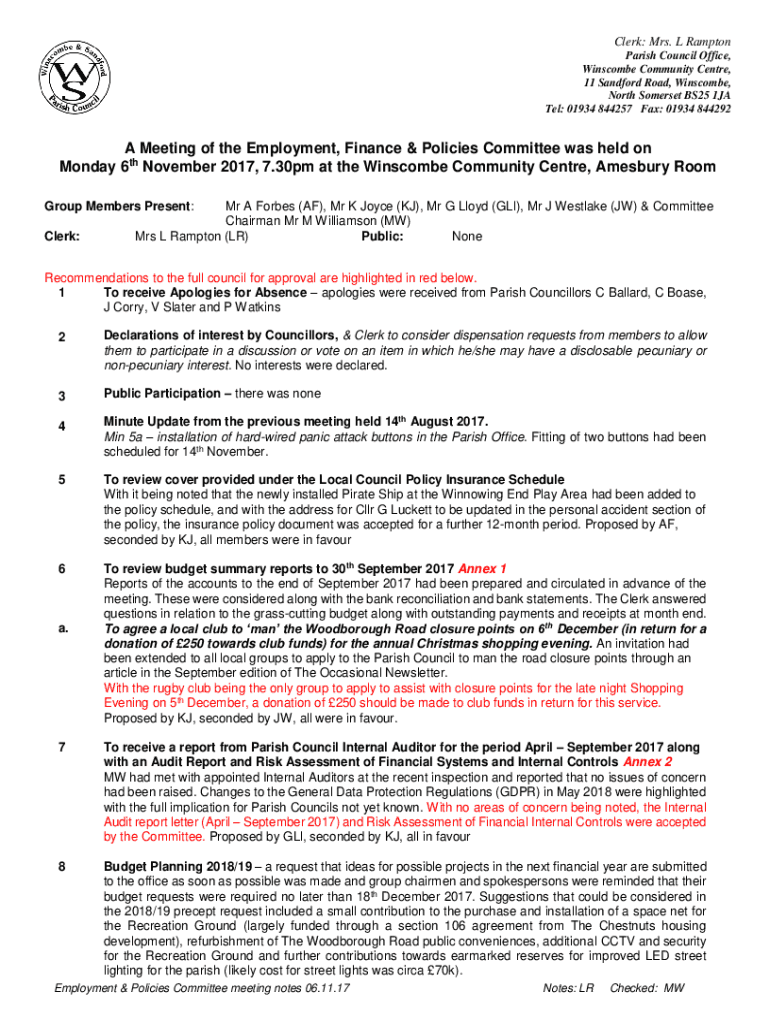Edit your clerk - winscombe and form online