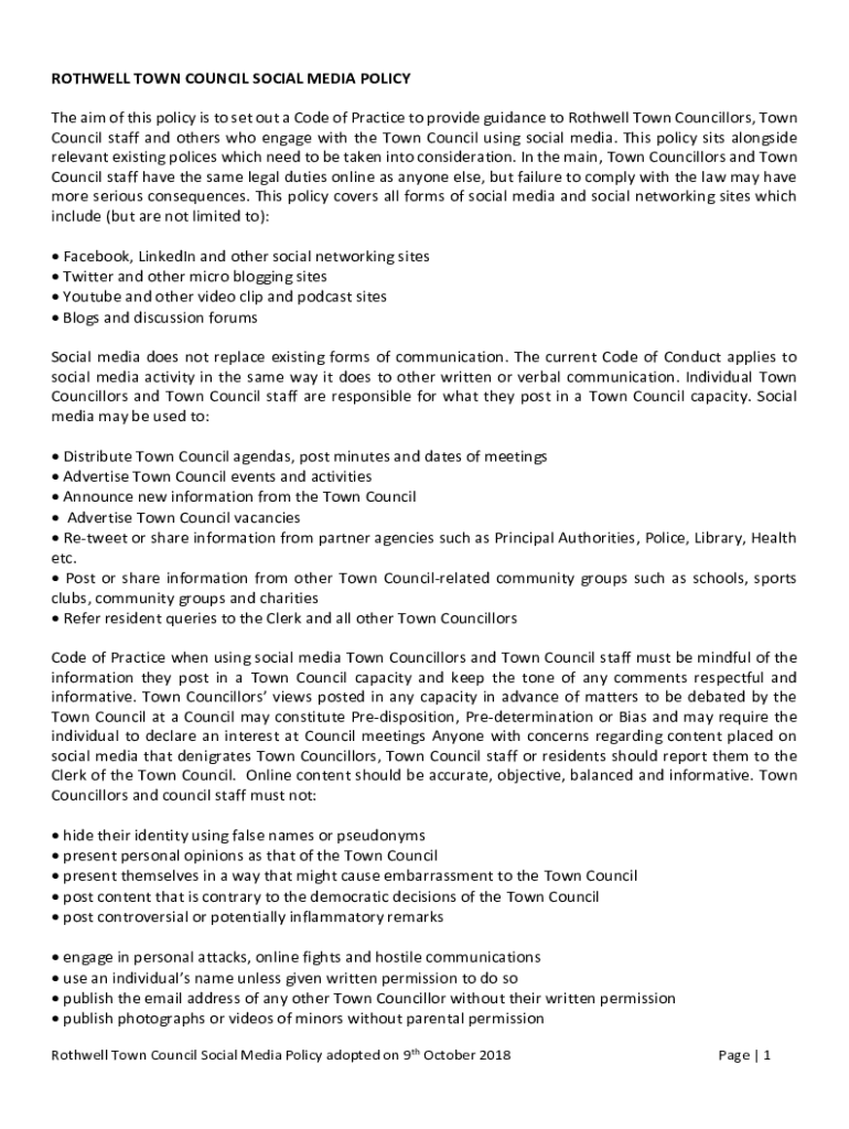 Get the free Town of Morrisville Social Media Policy for Elected Officials