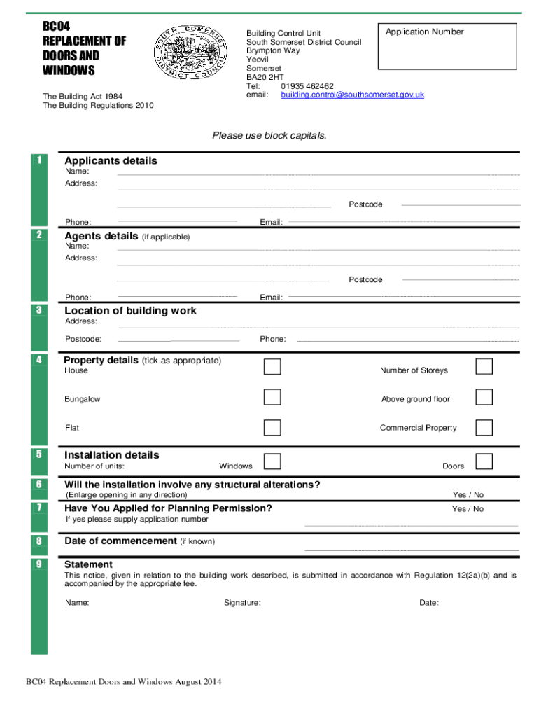 Building controlsouth somerset district can be filled out online or by submitting a paper application to the local Building Control department.