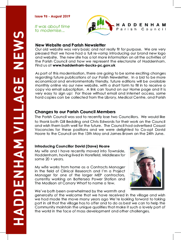 ADDENDUM VILLAGE Reissue 95 August 2019It was about time to modernize... New Website and Parish Newsletter old website was very basic and not really fit for purpose. We are very pleased that we have