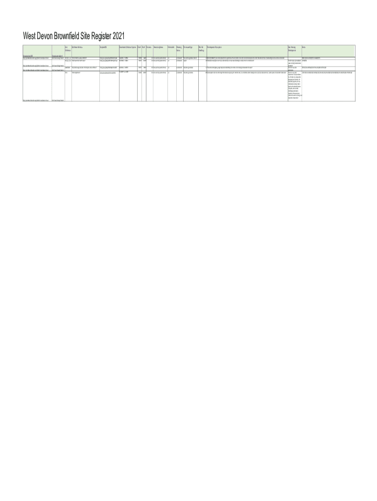 West Devon Brownfield Site Register 2021 OrganisationURIOrganisationLabelhttp://opendatacommunities.org/id/districtcouncil/westdevonWestDevonBoroughCouncilhttp://opendatacommunities.org/id/districtcouncil/westdevonWestDevonBoroughCouncilhttp://opendatacommunities.org/id/districtcouncil/westdevonWestDevonBoroughCouncilhttp://opendatacommunities.org/id/districtcouncil/westdevonWestDevonBoroughCouncilSite
