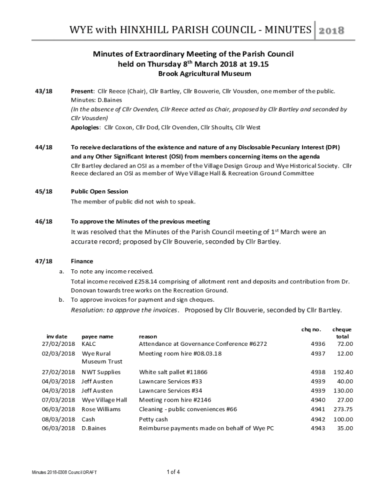 Minutes of Extraordinary Meeting of the Parish Council