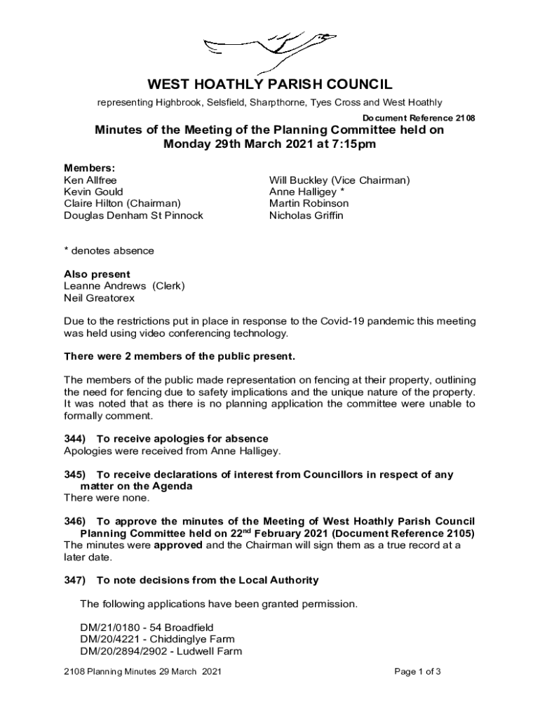 Document Reference 2108Minutes of the Meeting of the Planning Committee held on