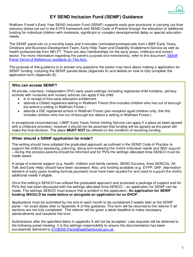 EY SEND Inclusion Fund (SERIF) Guidance Waltham Forests Early Year SEND Inclusion Fund (SERIF) supports early year provisions in carrying out their statutory duties set out in the EYES framework and