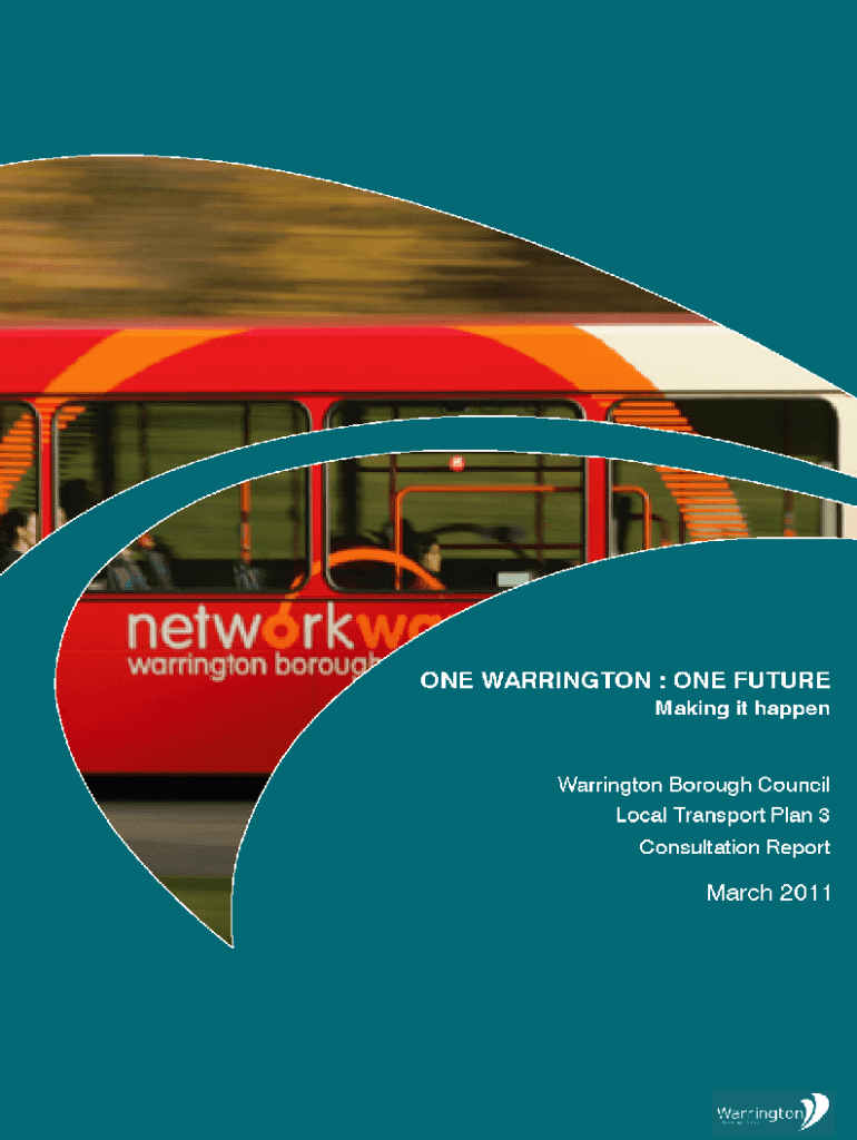 ONE WARRINGTON: ONE FUTURE Making it happen1.0Consultation reportIntroductionAs a transport authority, Warrington Borough Council has a statutory duty to produce a Local Transport Plan. The draft