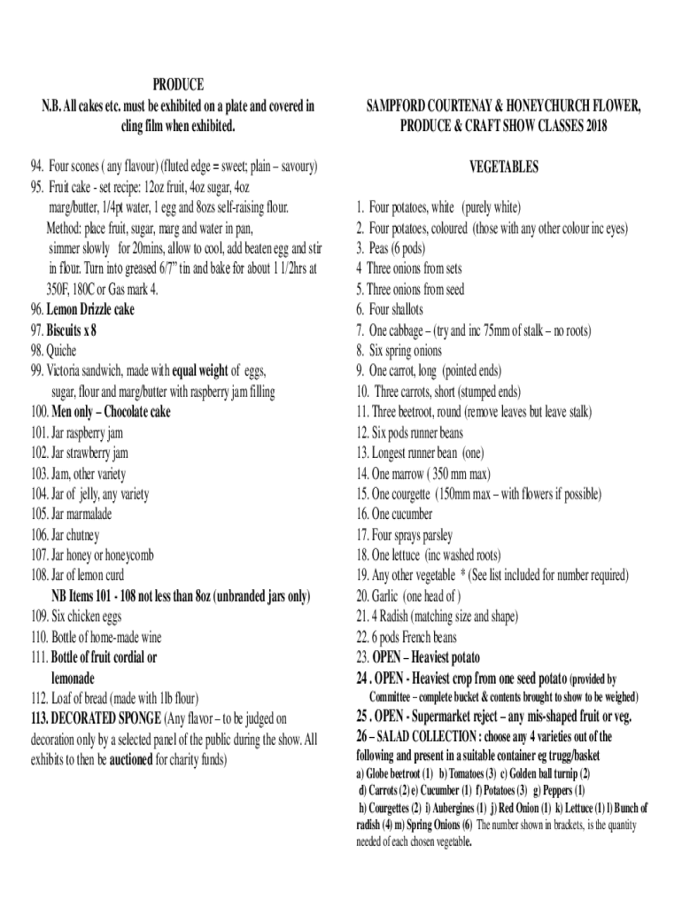PRODUCE N.B. All cakes etc. must be exhibited on a plate and covered in cling film when exhibited. 94. Four scones (any flavor) (fluted edge sweet; plain savory) 95. Fruit cake set recipe: 12oz fruit,